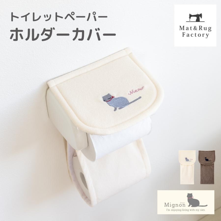 トイレットペーパーホルダーカバー ミニョン トイレカバー トイレ用品 ネコ 猫 ねこ おしゃれ 洗える アイボリー ブラウン オカ