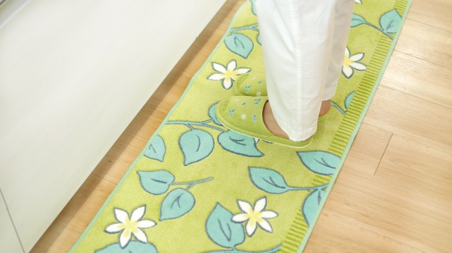 モダン&シンプルな北欧デザインや、シンプルなリーフデザインのキッチンマット。リビングから見えるキッチンやアイランドキッチンにぴったりな、インテリア性の高いマットに仕上がりました。薄手でやわらかいため、小さく畳んで洗濯機で洗っていただけます。軽量なので扱いやすく、干すときも持ち運びラクチン。キッチンマットにはうれしい吸水加工付き。細部までこだわった安心の日本製キッチンマットです。裏面には滑り止め加工を施しています。