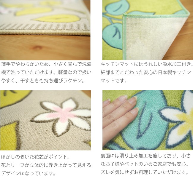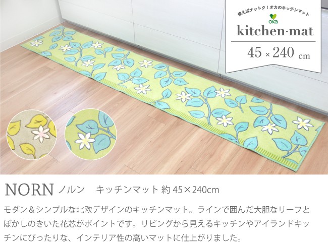 キッチンマット 洗える 約240×45cm プリント 台所マット おしゃれ 日本製 おしゃれ 花柄 布製 廊下敷き 裏面すべり止め加工 オカ