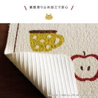 日本製のキッチンマットでねこ柄がかわいいデザイン。サラサラの肌触りが特徴の薄手のマットです。洗面前やキッチンなど様々な場所に敷いても引き出しなどに引っかかりにくく使う場所が広がります。毛羽立ちが少なくお手入れも簡単です。裏面はすべり止め加工がされています。へたりにくいしっかりとした縫製、丸くカットした角はマットが浮き上がりにくいようになっており、足元がひっかかりにくく安心です。