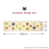 キッチンマット 洗える 約180×45cm クロネコ 日本製 ねこ 猫 ずれない 廊下敷き 洗濯可 おしゃれ 薄手 生成り イラスト オカ