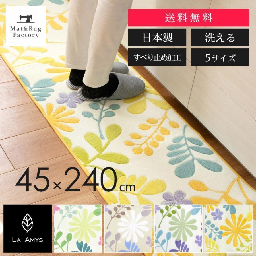 キッチンマット 約240×45cm 洗える エミーズ ソレイユ 北欧 ロング おしゃれ 布製 滑り止め 台所マット 日本製 キッチン マット 廊下敷き オカ