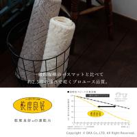 | シックで落ち着いたカラーの「乾度良好ピュール」バスマット。ミニマルなインテリアやモノトーンを基調としたお部屋におすすめのシンプルなデザインのマットです。主張しすぎないデザインでお部屋にスッと馴染みます。機能性もよく、吸水速乾性の高い「乾度良好」繊維を使用しています。繊維の1本1本に無数の穴が空いているのでこの穴がスッと水分を吸収し、また空気も取り込みすばやく乾きます。その速乾性はコットンの約2.5倍の速さ。あっという間に乾くので洗い替えが不要なほど。冬でもヒヤッとしない吸水速乾性を体感してください。 |