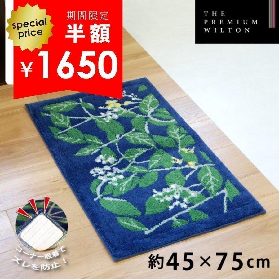 玄関マット おしゃれ 室内 屋内 リーフブルー 約45×75cm コーナー吸着つき 洗える 日本製 ウィルトン織り すべり止め おしゃれ ずれにくい 返品不可 オカ
