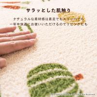 顔料プリントキッチンマットにナチュラルテイストのキッチンマットが仲間入りしました。まるで畑のようにきちんと並んだ野菜のデザインがほっこりできるキッチンマットです。野菜らしいカラーにこだわり、キッチンにぴったりのマットに仕上げました。 またマットは、シャツなどを製造する時に出るハギレを再利用し、糸にした再生糸で出来た生地に柄をプリントしています。環境にも優しく、ナチュラルな風合いが特徴のマットに仕上がっています。 毛羽立ちが少なくお手入れも簡単です。裏面はすべり止め加工がされています。へたりにくいしっかりとした縫製、丸くカットした角はマットが浮き上がりにくいようになっており、足元がひっかかりにくく安心です。