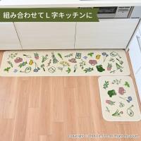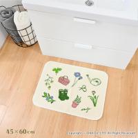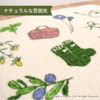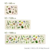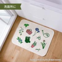 洗面マット キッチンマット 洗える 約60×45cm ガーデナー 北欧 リーフ ずれない 廊下敷き 洗濯可 おしゃれ 薄手 生成り イラスト オカ