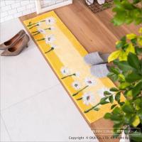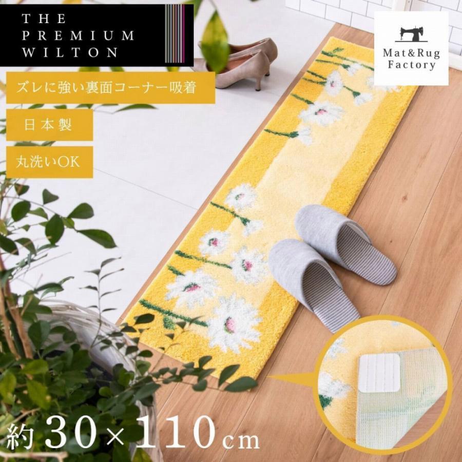 玄関マット おしゃれ 屋内 風水 イノセントデイジー 約30×110cm かまち 框 コーナー吸着つき 吸着シート 洗える 室内 日本製 ウィルトン織り 黄色 オカ