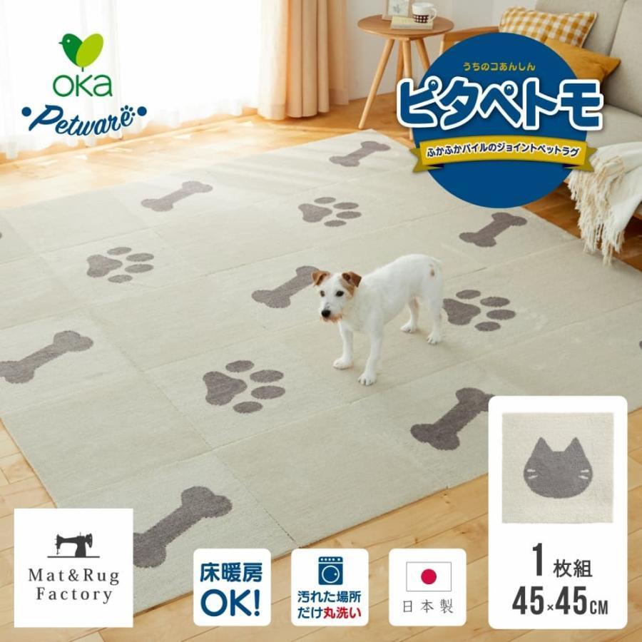 ペットマット タイルマット ピタペトモ 約45×45cm 1枚組 ペットラグ ペット 犬 ねこ ネコ ラグ 吸着 洗える 日本製 床暖房可 ブラウン ベージュ オカ