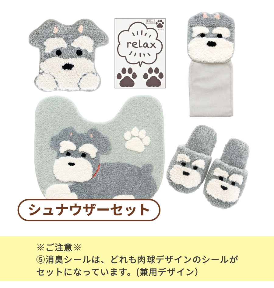 トイレマットセット 5点 (約55×60cm) ファンディット アニマル トイレマット+マスコット+スリッパ+ホルダー+消臭シール シュナウザー オカ