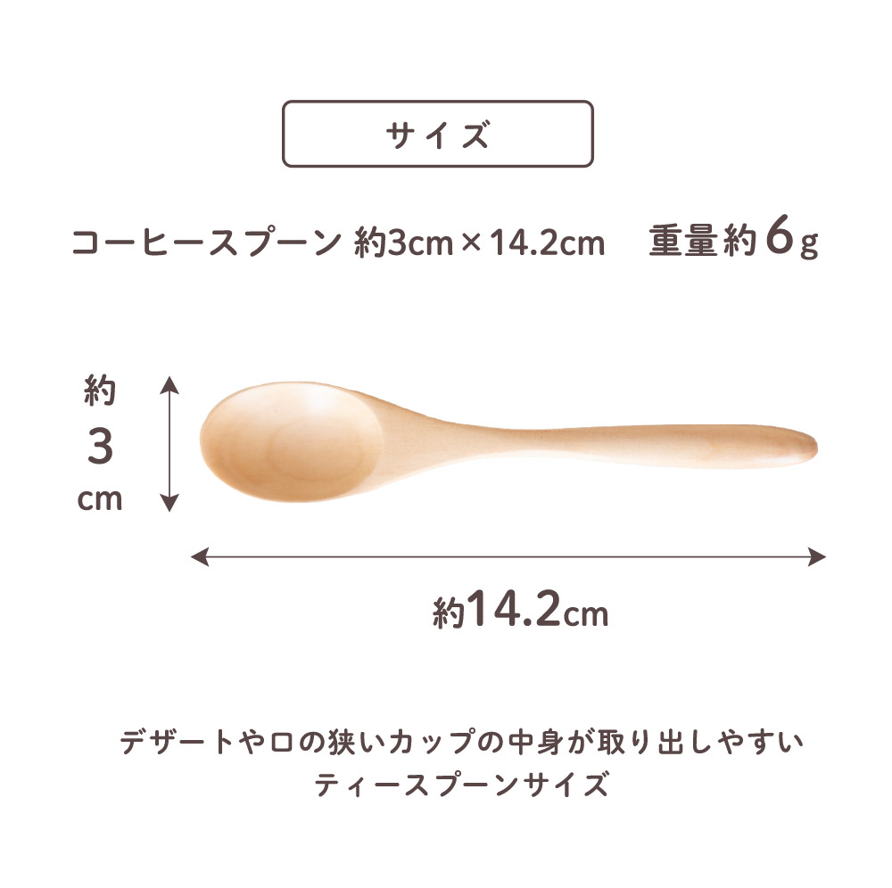 ・スプーン3本セット ・サイズ:約3cm × 14.2cm ・重量:約6g ・素材:天然木 ・中国製 ・ナチュラル ・家庭用食洗機対応