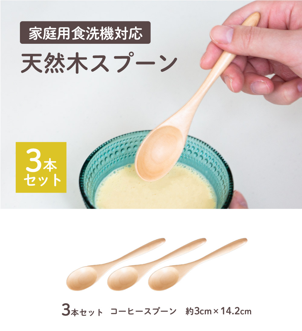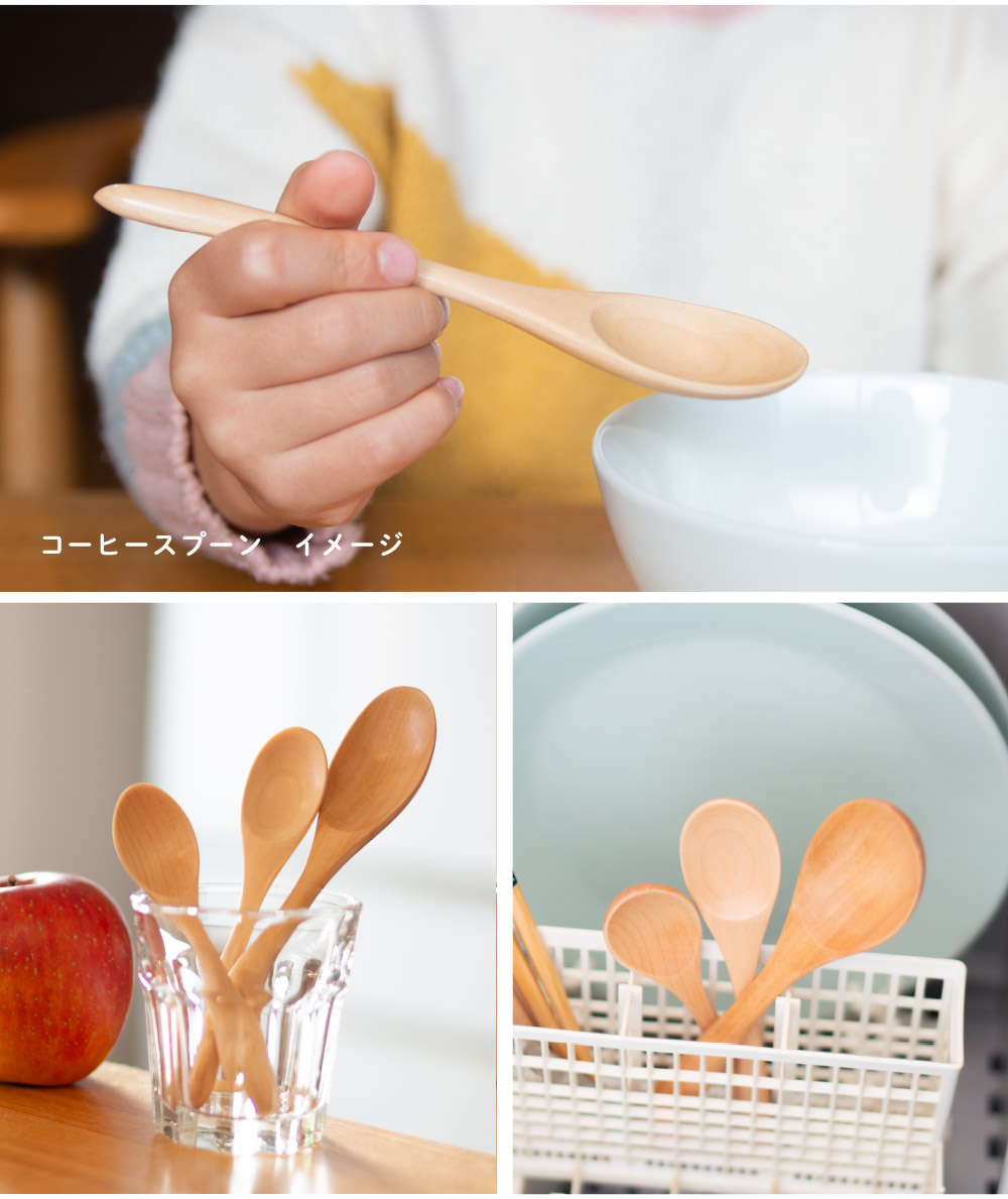 スプーン 天然木 木製スプーン コーヒースプーン 3本セット 食洗機対応 おしゃれ カフェ風 子供 キッズ カトラリー ナチュラル 和食器 食器 幼児 小さい オカ