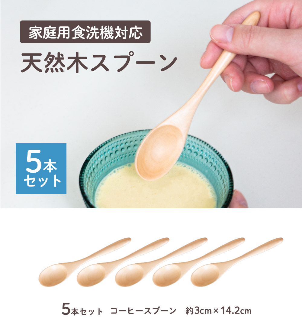 スプーン 天然木 木製スプーン コーヒースプーン 5本セット 食洗機対応 おしゃれ カフェ風 子供 キッズ カトラリー ナチュラル 和食器 食器 幼児 小さい オカ