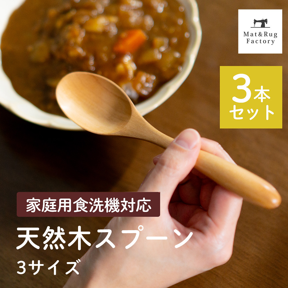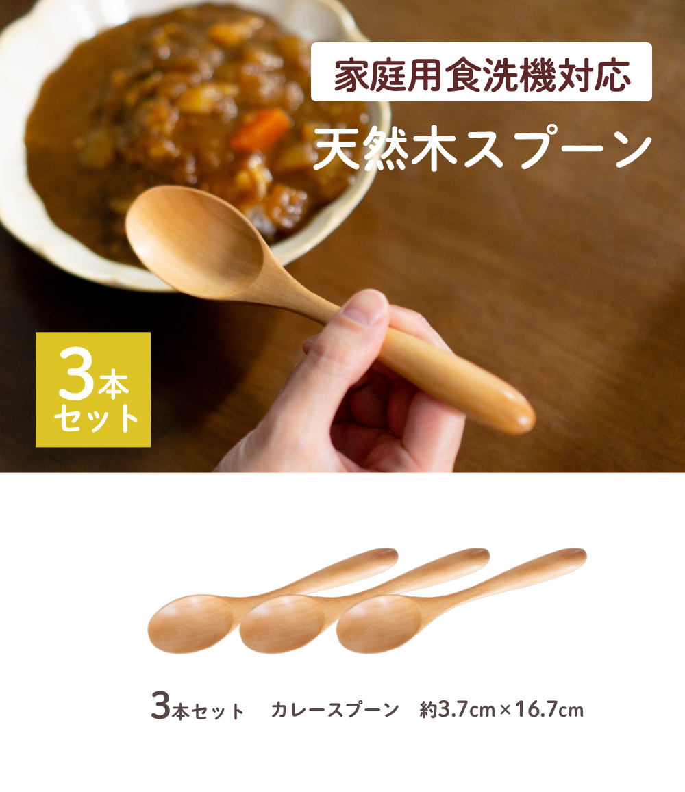 スプーン 天然木 木製スプーン カレースプーン 3本 食洗機対応 おしゃれ カフェ風 子供 キッズ カトラリー ナチュラル 和食器 食器 幼児 小さい オカ