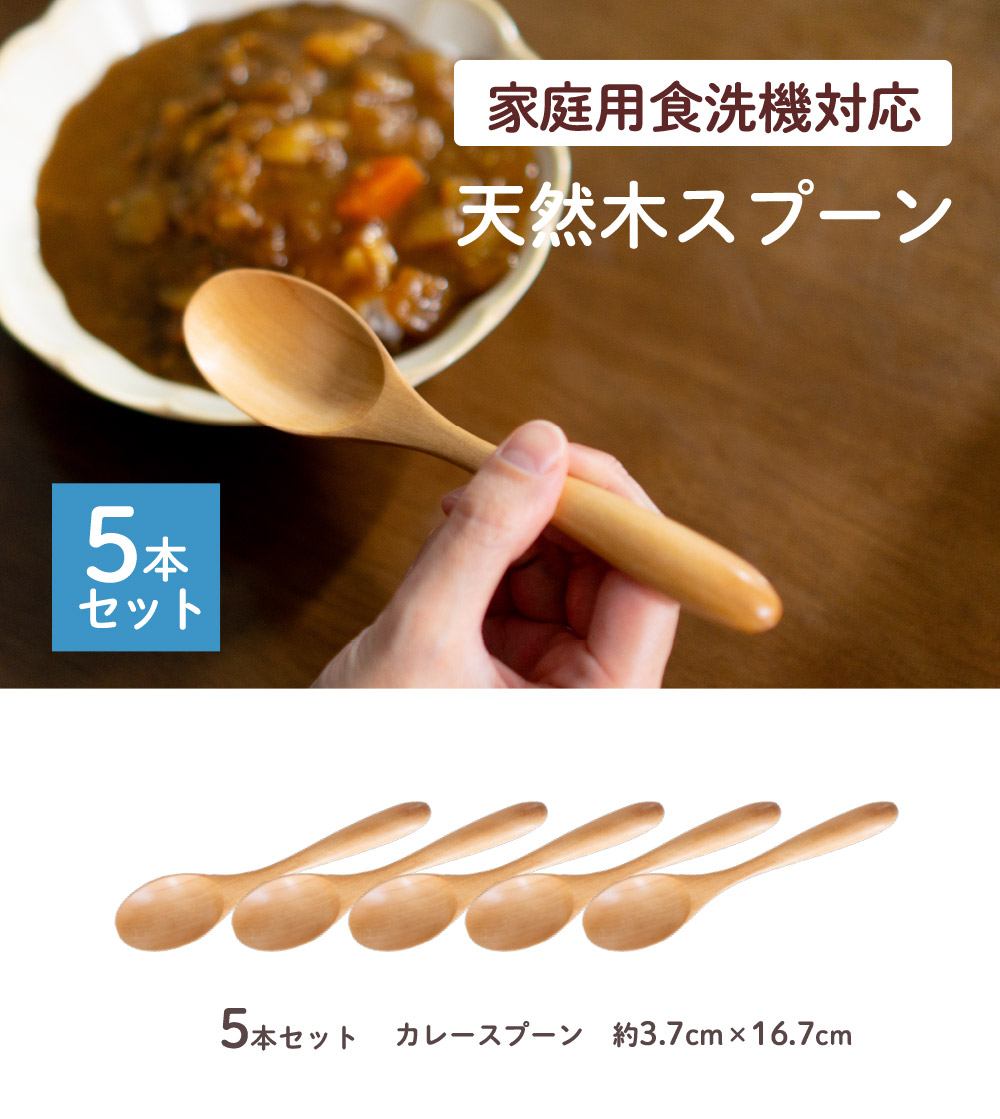 スプーン 天然木 木製スプーン カレースプーン 5本セット 食洗機対応 おしゃれ カフェ風 子供 キッズ カトラリー ナチュラル 和食器 食器 幼児 小さい オカ
