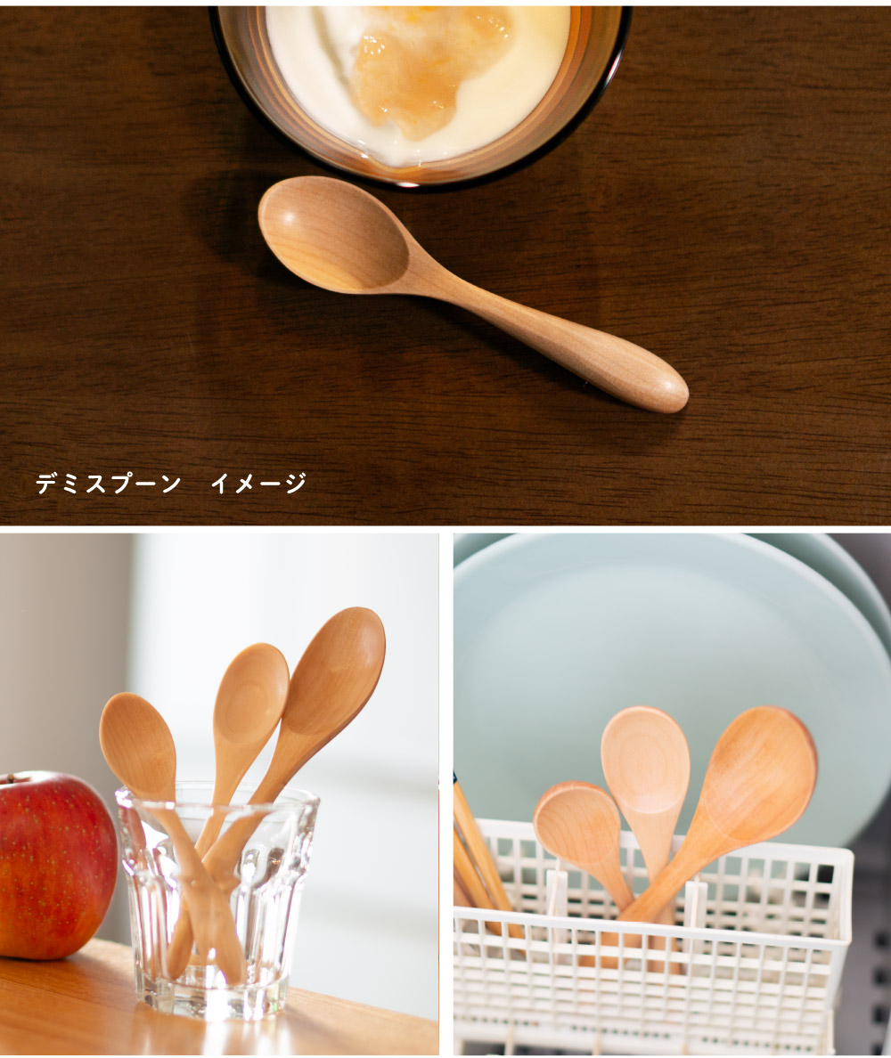スプーン 天然木 木製スプーン デミスプーン 3本セット 食洗機対応 おしゃれ カフェ風 子供 キッズ カトラリー ナチュラル 和食器 食器 幼児 小さい オカ