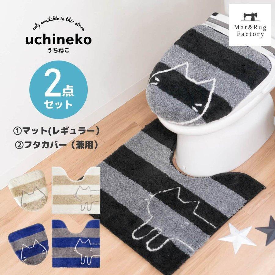 トイレマットセット 2点 約60×60cm うちねこ トイレマット+ドレニモフタカバー (洗浄暖房型 普通型 兼用) トイレマットセット ネコ ねこ オカ