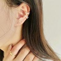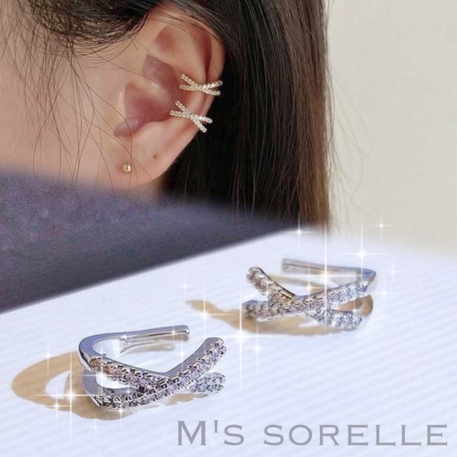 ビジューバーをクロスさせた X モチーフの立体的なイヤーカフ。