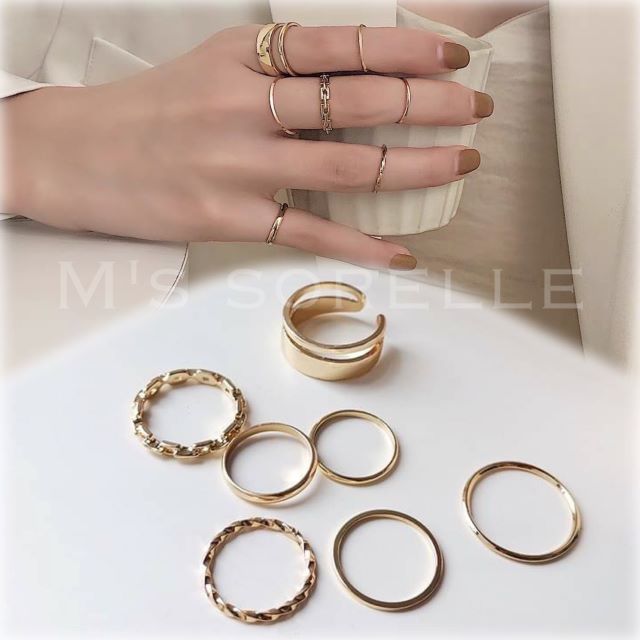 その日の気分で自由に組み合わせられる、指輪7点セットです。