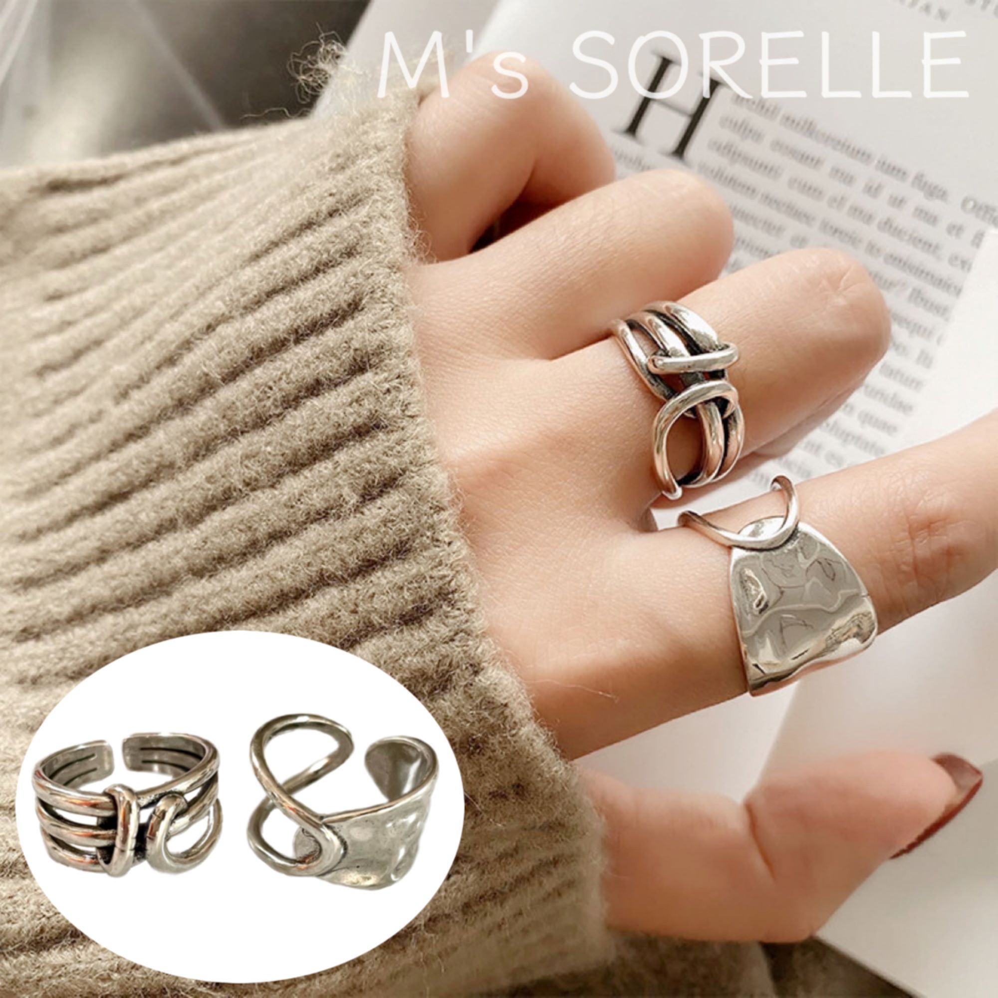 指輪 太め おしゃれ レディース メンズ リング セット フリーサイズ サイズ調整 大ぶり 大きいサイズ 金属アレルギー対応 シルバーリング シルバー925 シルバー