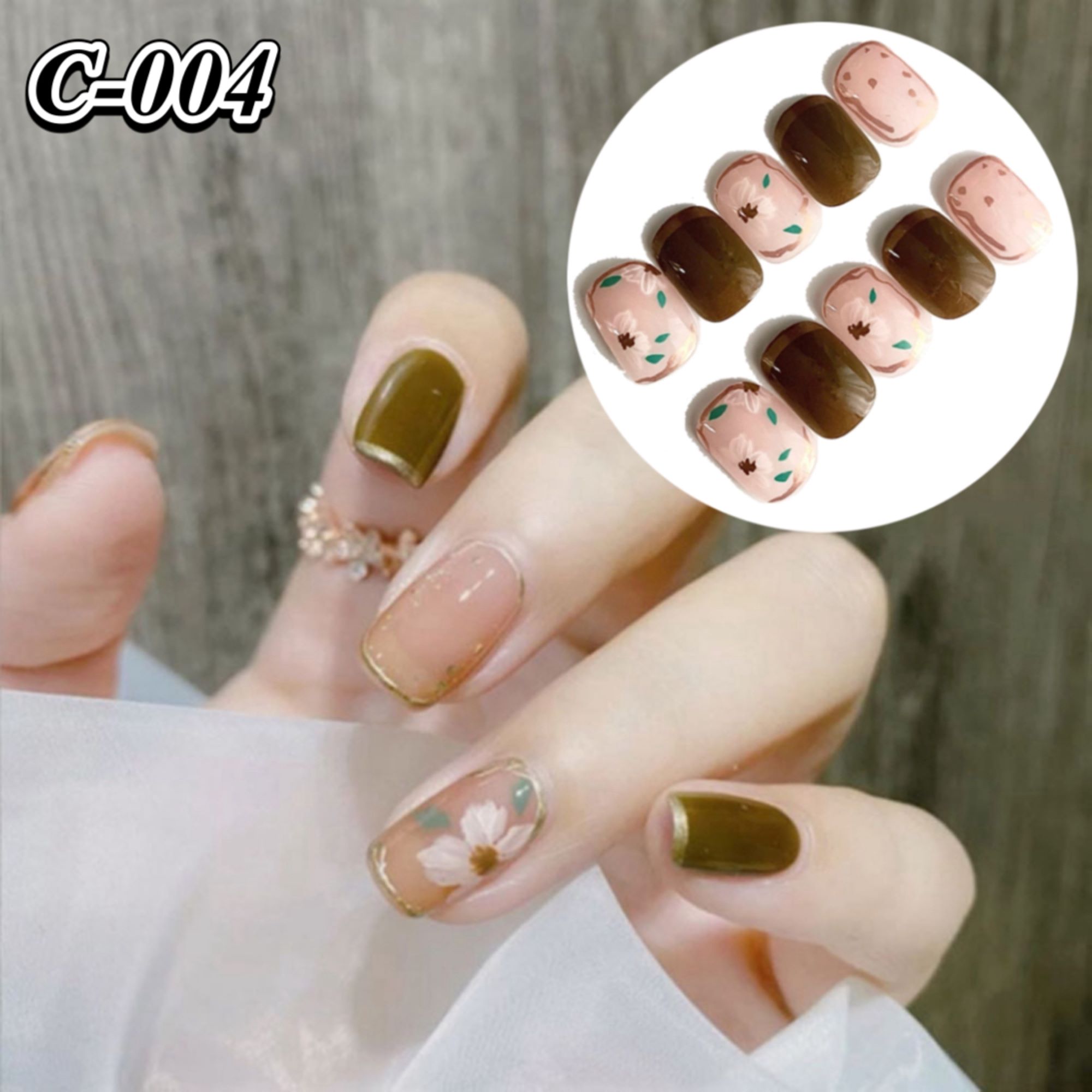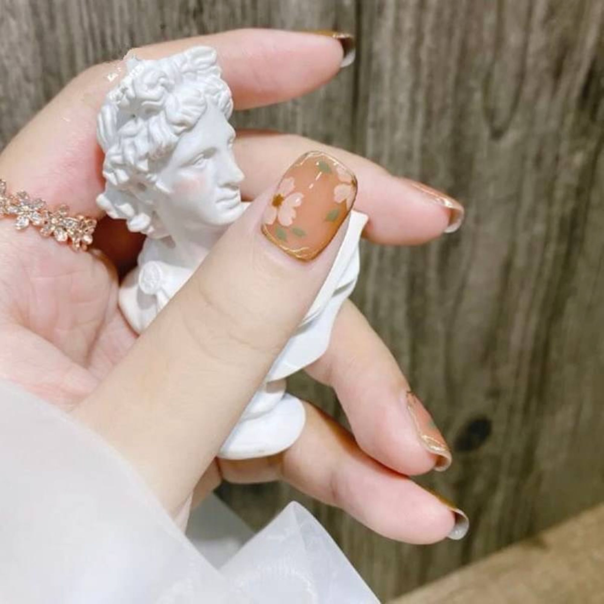 ネイルチップ 単色 和柄 韓国 成人式 ピンク 茶 可愛い ライン フレンチ ショート ワンカラー 貼るだけ ラウンド ミディアム シンプル 花柄 花 着物 和装 和風