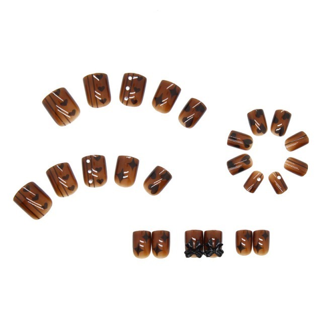 ネイルチップ ジェルネイル ネイル 3Dネイル リボン ハート 黒 ネイルチップ 日常 ジェルネイルチップ 付け爪