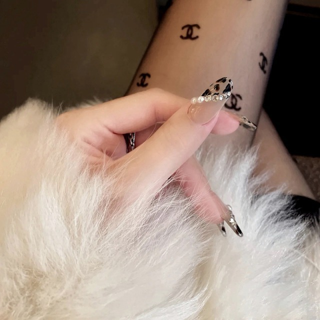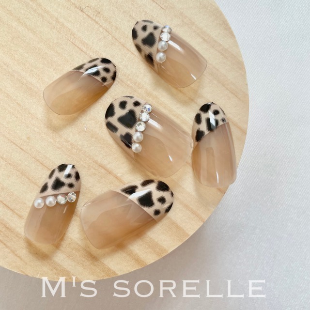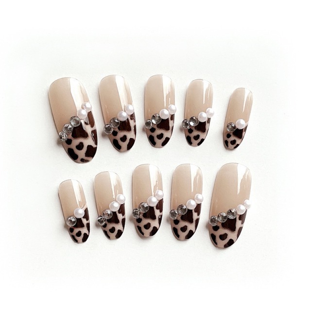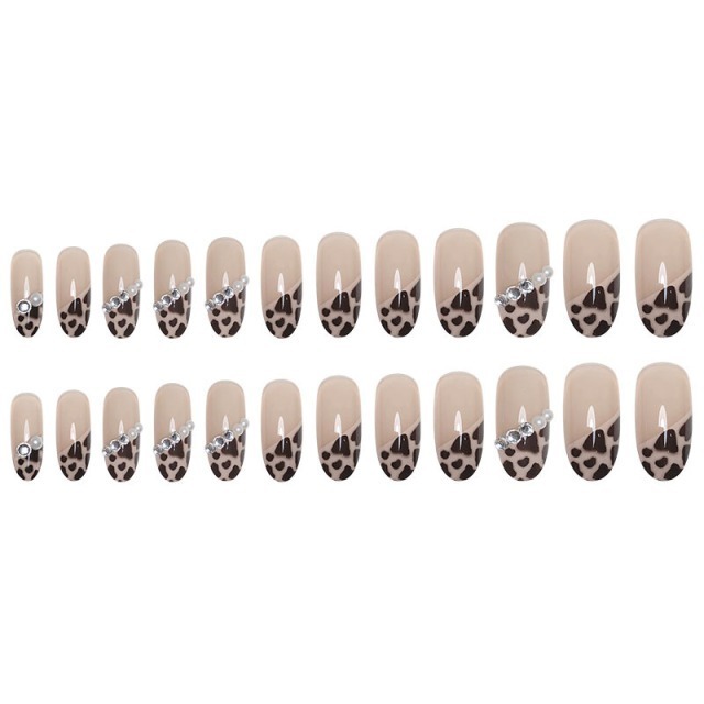 ネイルチップ レオパード ネイルチップ ショートオーバル 黒 つけ爪 ブラウン ロング ネイルチップ 結婚式 お呼ばれ 韓国 ヒョウ柄 パール 秋 冬 派手 即日発送