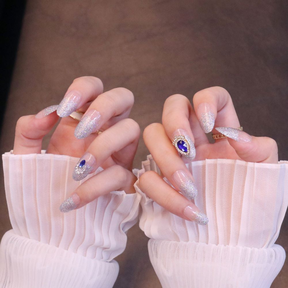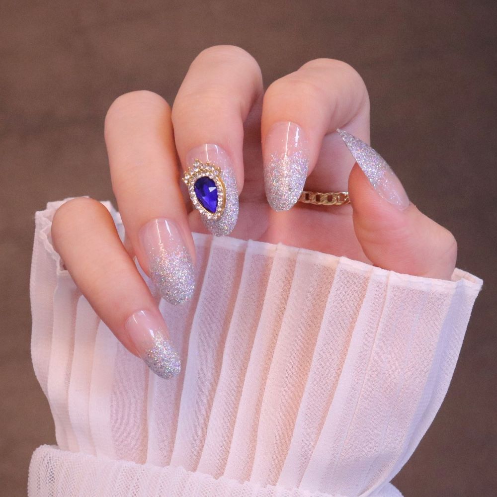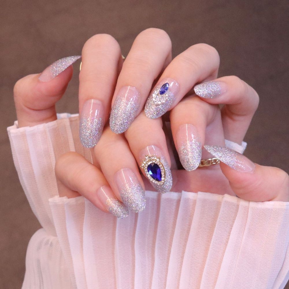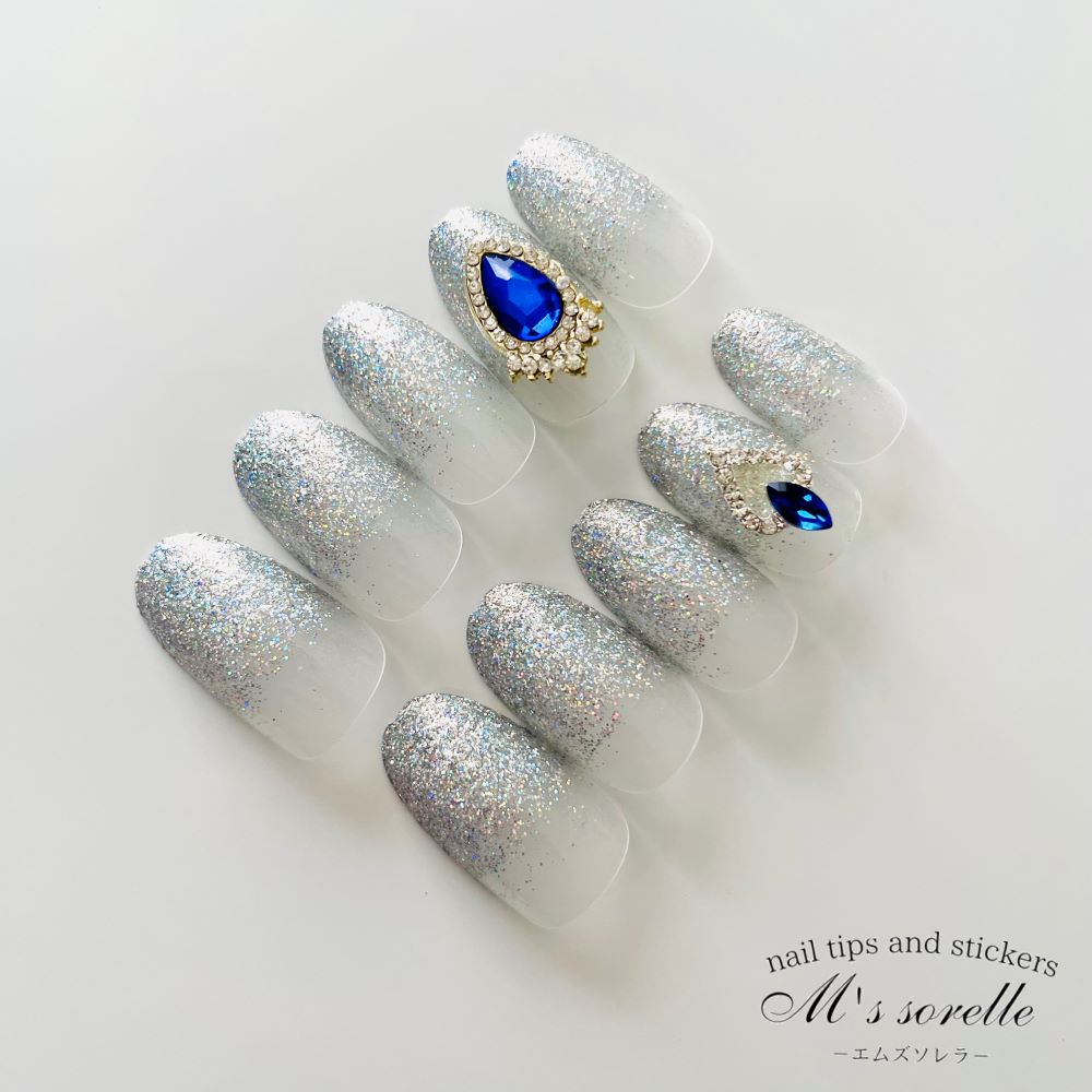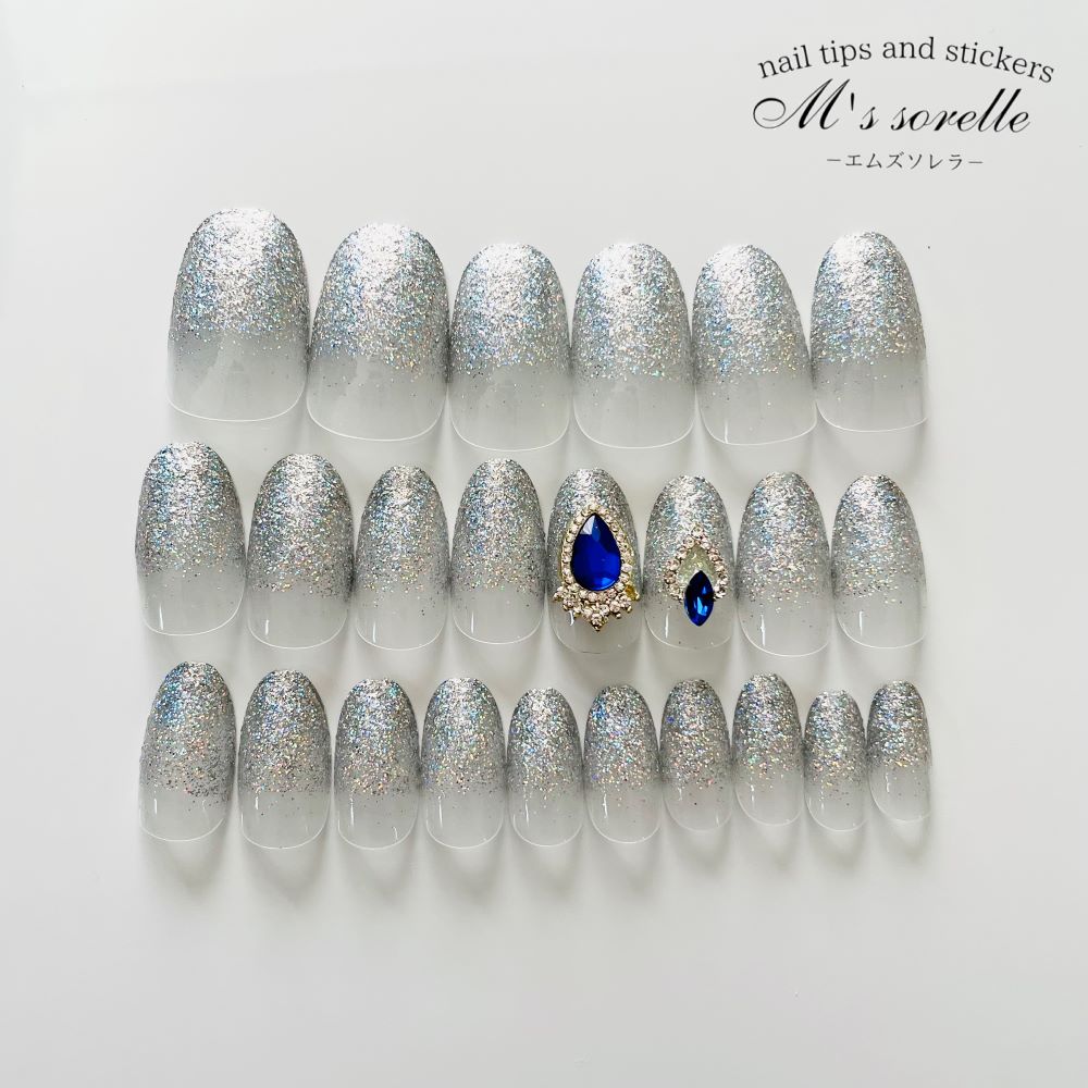 ネイルチップ 派手 和装 ロング ミディアム オーバル キラキラ 結婚式 ブライダル お呼ばれ シルバー ラメ かっこいい 成人式 振袖 和 和風 ストーン 繰り返し