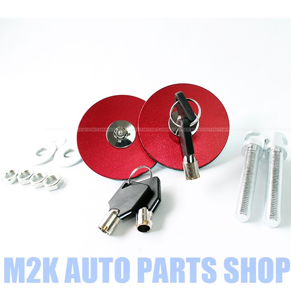 鍵付き ボンネットピン フラットタイプ 円盤 円形 メタルタイプ ボンピン 2個 レッド jdm usdm スタンス ヘラフラ