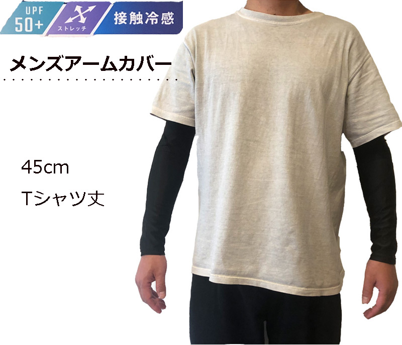 アームカバー メンズ 接触冷感 さらさら 涼しい ストレッチ 45cm Tシャツ丈 UVカット 日よけ