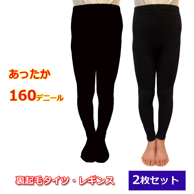 2枚セット レディース 裏起毛タイツ・レギンス 160デニール 黒無地 2サイズ
