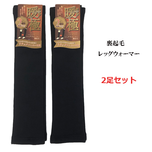 上質 裏起毛 レッグウォーマー 2足セット 暖極 ストレッチ 生地 ロング 黒 裏ボア 暖かい あったか 男女兼用 防寒 保温 冬物