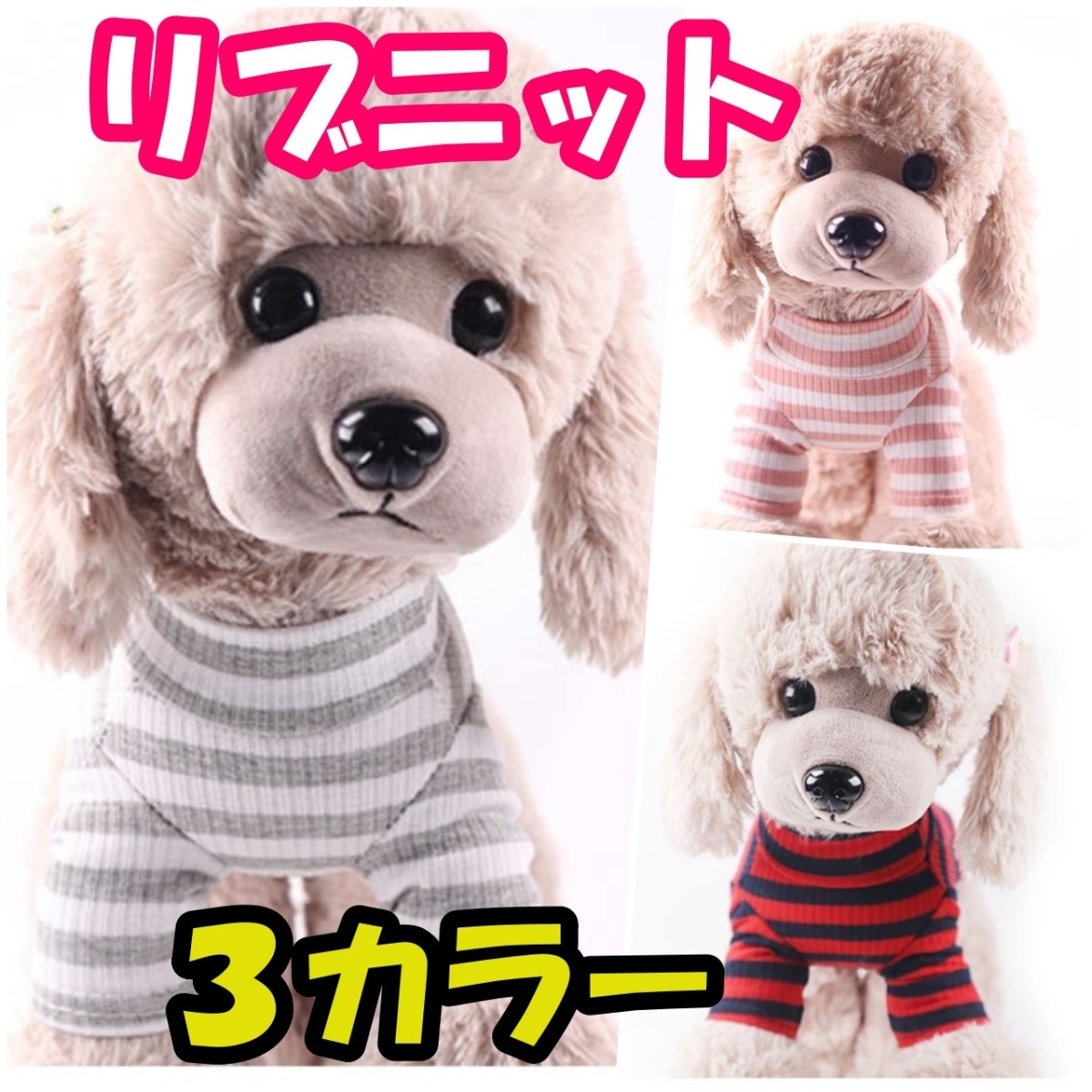 犬 服 犬服 ボーダー ストライプ リブニット かわいい おしゃれ 袖あり リブ インナー 薄手 春夏 秋冬 ドッグウェア お散歩 お出かけ 小型犬 ペット 着せやすい