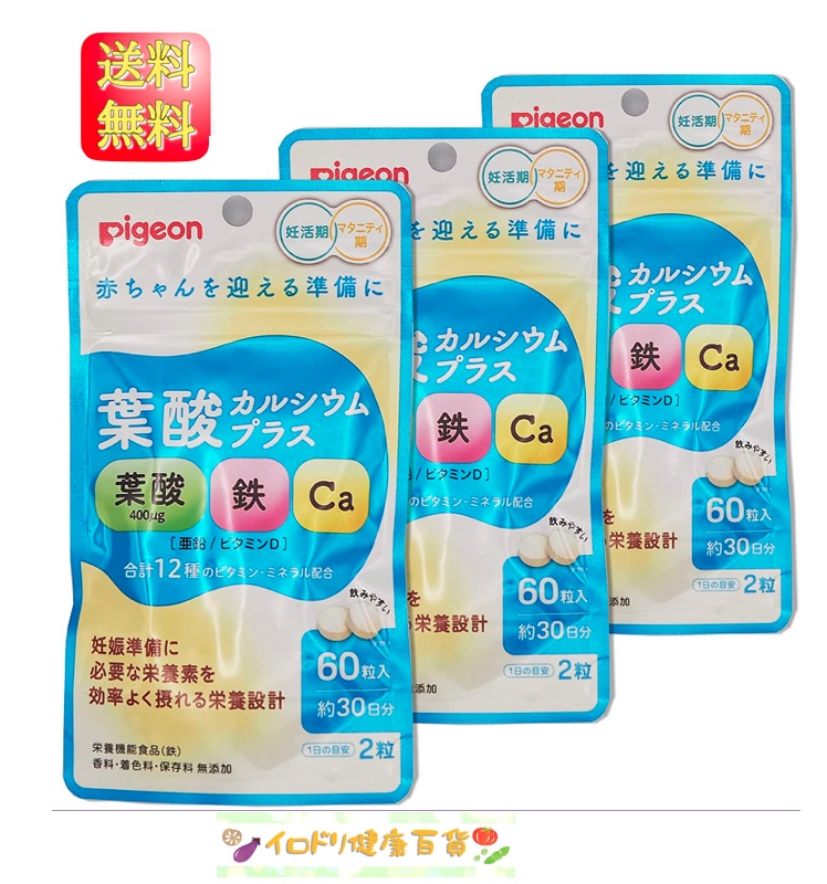 【3袋セット】Pigeon ピジョン サプリメント 葉酸カルシウムプラス 60粒 約30日分 栄養機能食品 妊活期 マタニティ期
