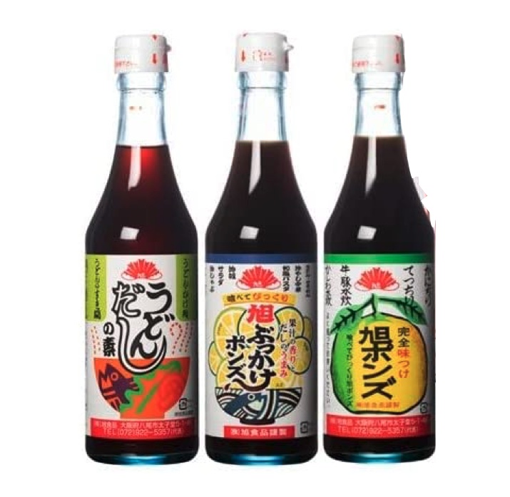 【株式会社旭食品】 味にうるさい大阪の方々の間で評判になった「大阪定番調味料」 1967年(昭和42年)の製造販売から50年をこえて、今なお愛されるポンズになれたのも、口コミから広まりご利用いただいている皆様のおかげです 元祖こだわりポンズの旭ポンズ!! そのおいしさの基本は「出汁/だし」です 厳選原料である「北海道の利尻昆布、国産混合節、国産乾椎茸」を使用し 自社工場でじっくりと丁寧に出汁をとっています それぞれのうまみ成分「グルタミン酸・イノシン酸・グアニル酸」が組み合わさることにより、うまみが格段にあがります これを「うまみの相乗効果」と言います ポン酢の香りには徳島産の「スダチ・ユコウ」高知産の「ユズ」を使用しています 食べておいしい!もらって嬉しい! 「喰べてびっくり!」を楽しんでください。