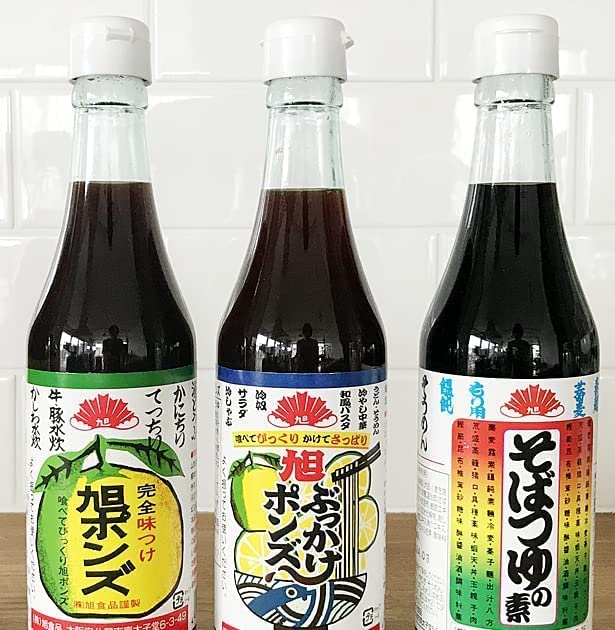内容:旭ポンズ360ml、旭ぶっかけポンズ360ml、そばつゆの素360mlの合計3本セット