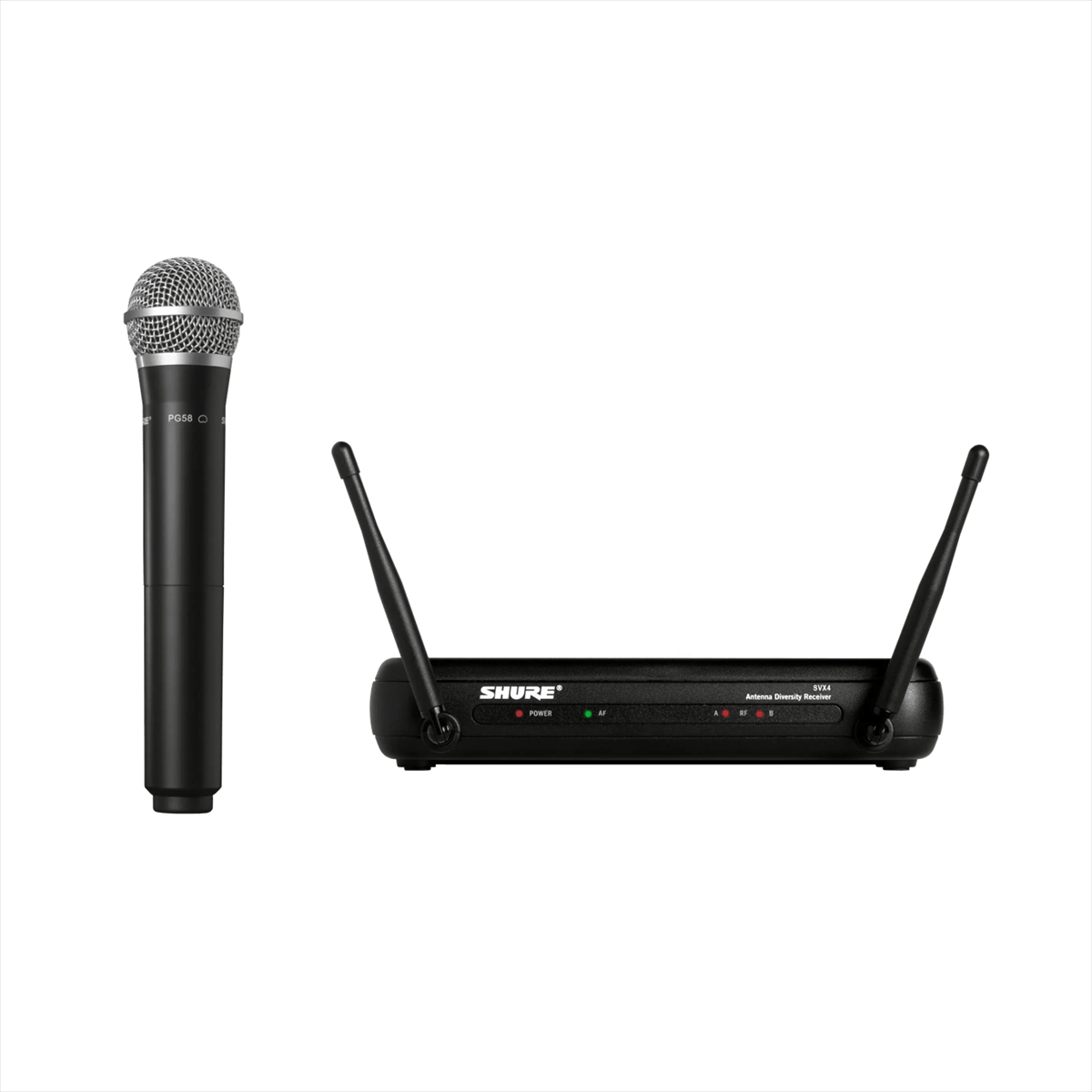SVX4ダイバーシティ受信機およびSVX2/PG58ハンドヘルドマイクロホン送信機のセット。