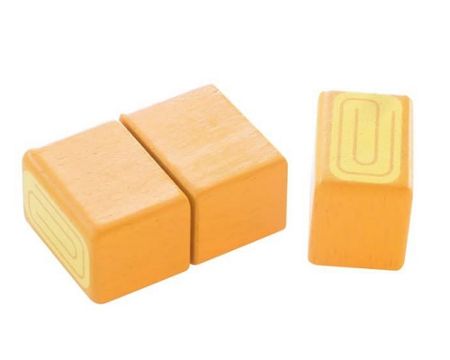 おままごとあそびにつかうたまご焼きのかたちをした木のおもちゃです。