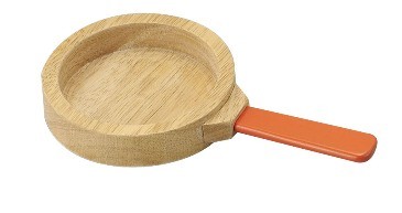 おままごとあそびにつかう「フライパン」のかたちをした木のおもちゃです。