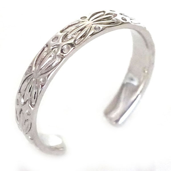 ボタニカル柄のハワイアンジュエリーです。無垢(裏抜きなし)で非常に着け心地の良い指輪です。足の指用トゥーリングです。サイズは#1−#16号まで0.5号刻みで通常対応しています。それより大きいサイズは別途お見積もりさせていただきます。お問い合わせください。フリーサイズリングですがより綺麗にフィットするように サイズ選択欄よりサイズをご選択ください。
