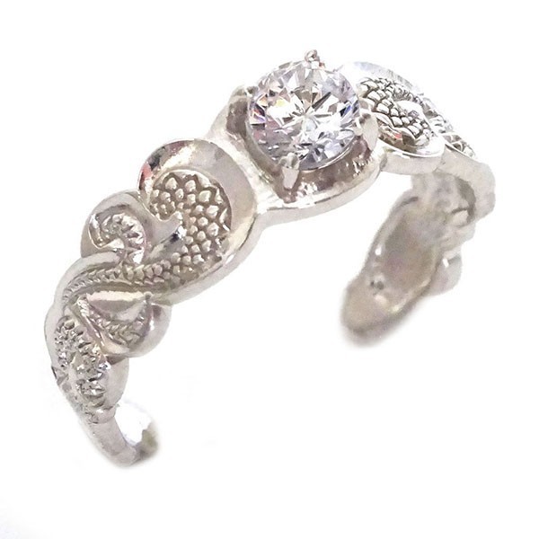 力強い波を表し「パワー」を意味するカイレキニ柄のハワイアンジュエリーです。足の指用トゥーリングです。人工石キュービックジルコニアを留めています。サイズは1〜16号まで0.5号刻みの対応です。それより大きいサイズは別途お見積もりになります。下記「大きいサイズの対応について」をご参照ください。フリーサイズリングですがより綺麗にフィットするように サイズ選択欄よりサイズをご選択ください。
