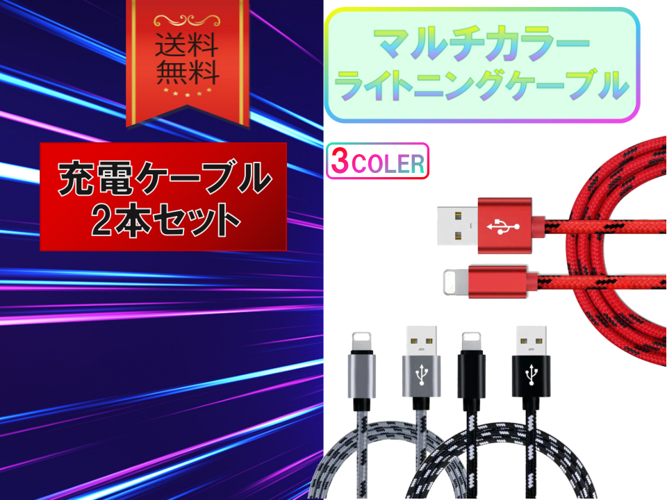 ライトニングケーブル iPhone 1m 2本セット USBケーブル 急速充電 高耐久 データ転送 丈夫で断線しにくい 安い コスパ最強 おすすめ 人気 lightning cable