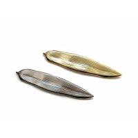 ゴールドとシルバーの二色あり(ゴールドは24kメッキ)、長い笹の葉の表面に若干くぼみがあるので安定してナイフやフォークを置くことができます。デザイン上 平面に置くと若干カタつきますが、ご使用上問題ございませんのでご了承くださいませ。