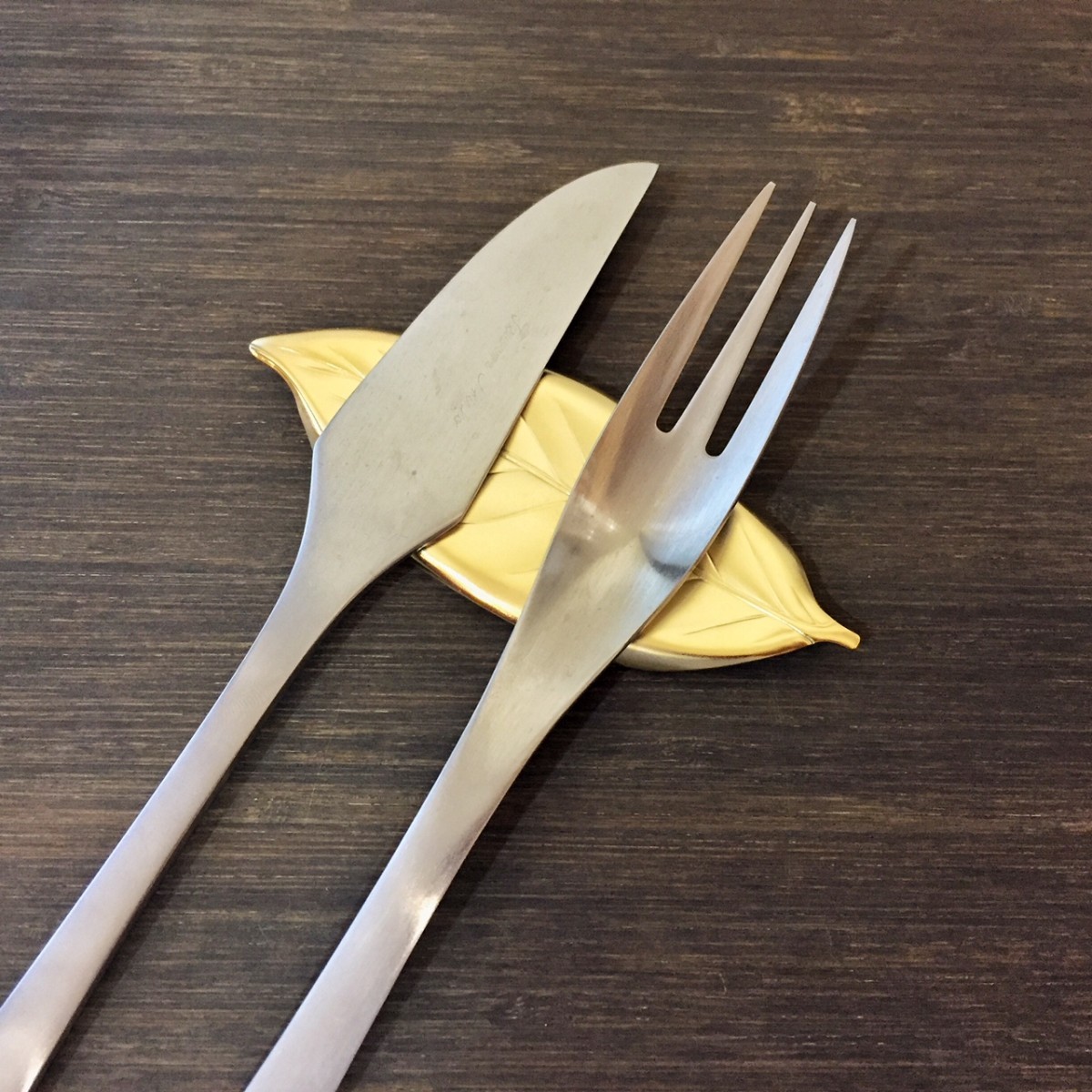 ゴールドとシルバーの二色あり、長い金木犀の葉の表面に若干くぼみがあるので安定してナイフとフォークを置くことができます。