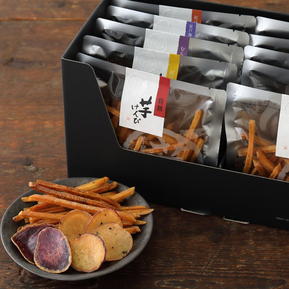 | ■特撰芋けんぴ(小袋)100g/2袋 ■塩けんぴ(小袋)100g/1袋 ■黒糖芋けんぴ(小袋)100g/1袋 ■黒胡麻芋けんぴ(小袋)100g/1袋 ■紅はるか胡麻芋チップ(小袋)60g/1袋 ■紅はるか芋チップ(小袋)60g/2袋 ■むらさき芋チップ(小袋)60g/2袋 ※季節によって内容が変わることがあります。 |