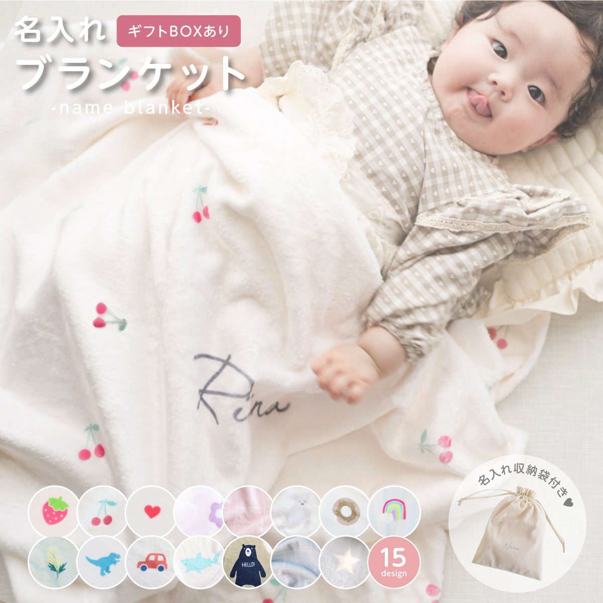 【15柄から選べる名入れブランケット】収納袋付き ひざ掛け 毛布 タオルケット ベビー おくるみ お昼寝 出産祝い 誕生日 赤ちゃん 新生児 名入れグッズC