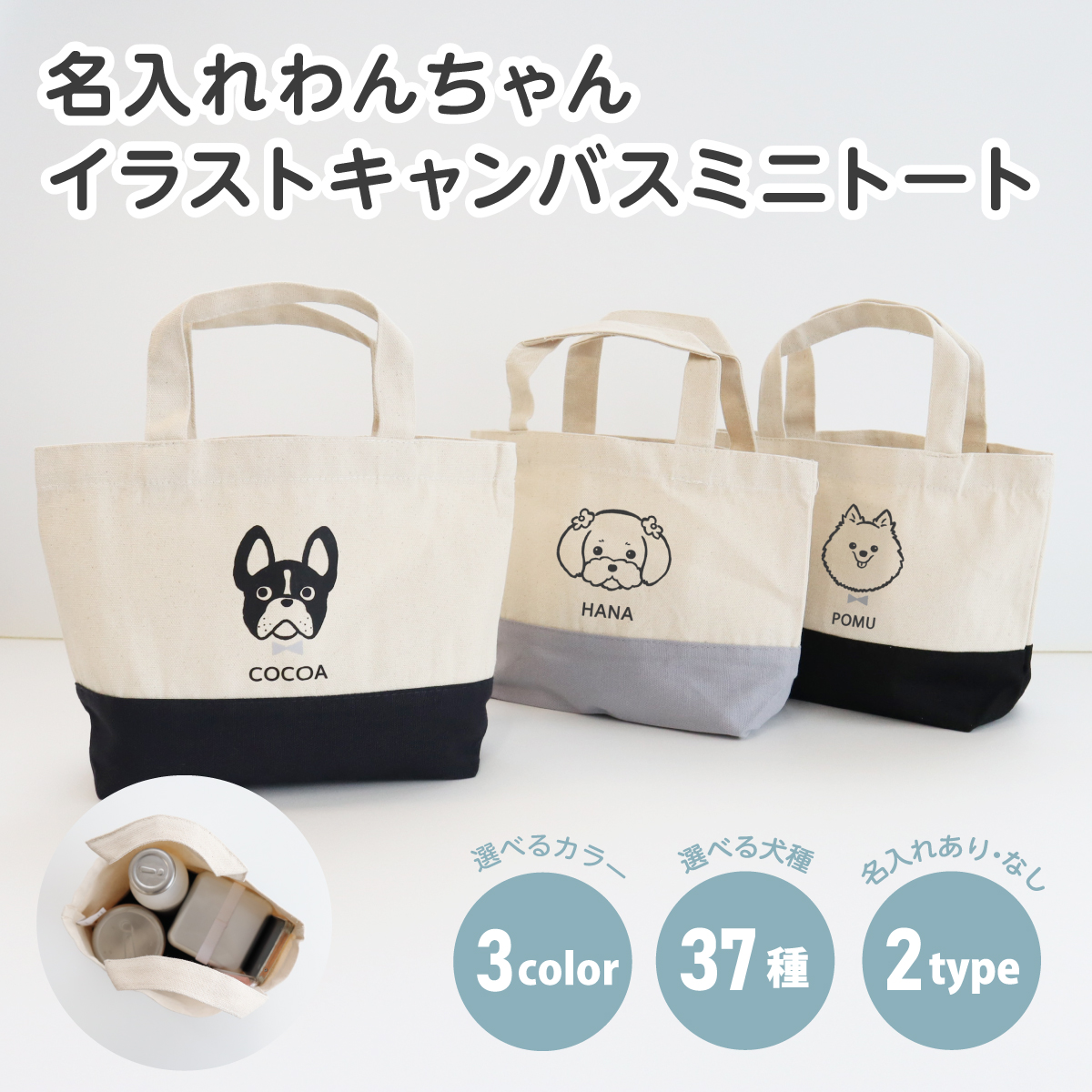 わんちゃん 名入れ 犬 イラスト バイカラー リボン キャンバス ミニバッグ ミニトート 犬柄 ペット 37種 犬種 犬雑貨 プレゼント 名入れグッズA 爆買