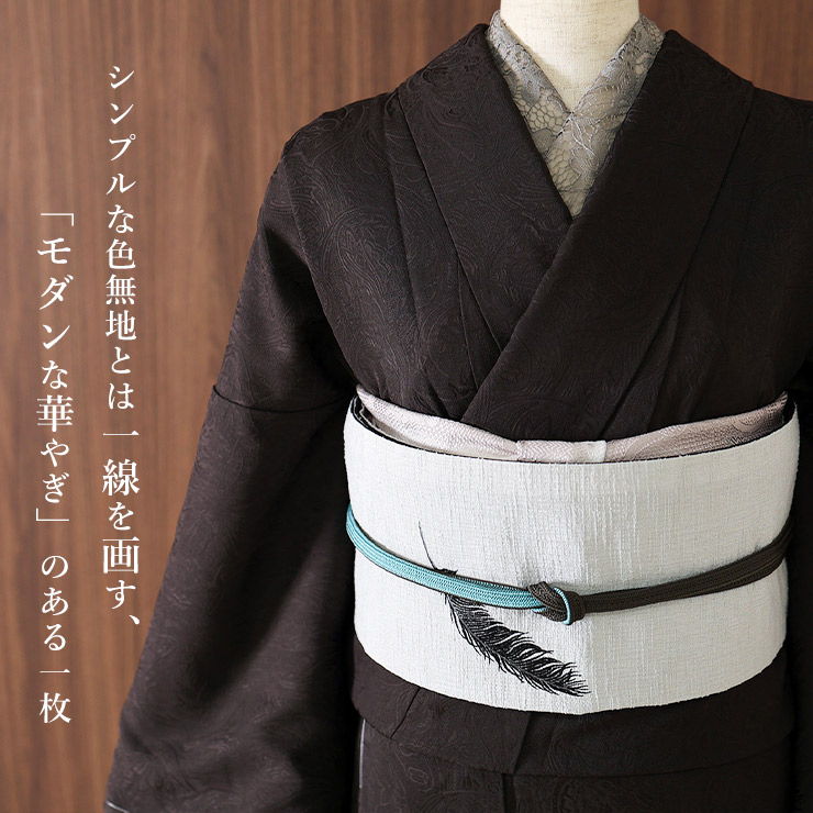 ジャガード織りによる立体感ある地紋に、更紗模様の優雅さが重なった、他にはないお洒落感のある色無地。格式ある袋帯を合わせればフォーマルな場にもふさわしい一枚ですが、何といってもおすすめは地紋の洗練された表情を活かした、粋なお洒落着としての着こなし。美術館巡りや街歩き、ちょっとしたお食事会などで「控えめながらも華やかな印象が残る」一枚です。