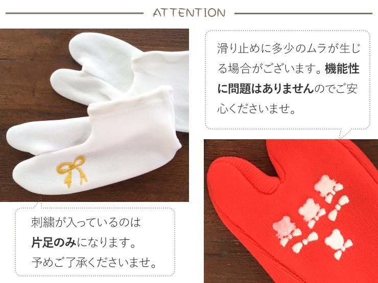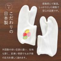 | 安心の日本製、さらに裏には滑り止め付きでやんちゃなお子様も安心です。デザインは当店オリジナルで、左足の甲部分やくるぶし部分に可愛い刺繍を入れています。 |