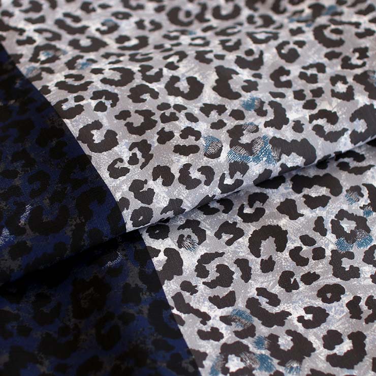 | レオパード柄、片寄のマニッシュなデザイン グレー地×ネイビー地にレオパード(豹)柄。 |