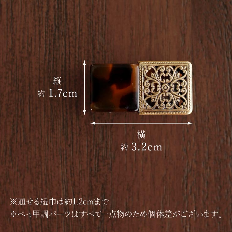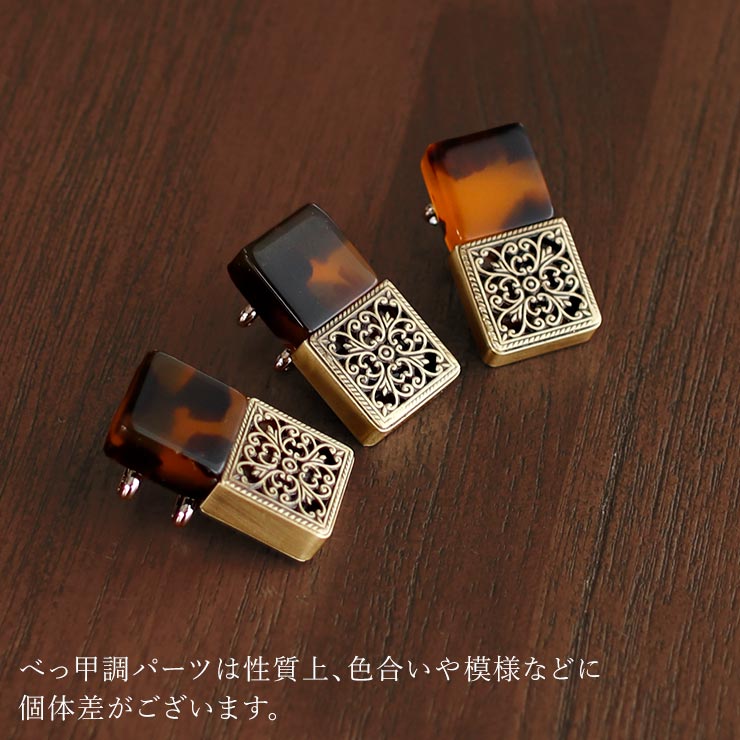 | 色柄 | ※ご覧いただいているモニタ・撮影環境により、多少色目が異なって見える場合がございます。 ※べっ甲調パーツは一点ごとに色の濃さや模様など異なります。 一点ものならではの風合いとしてお楽しみ頂ければ幸いです。 |